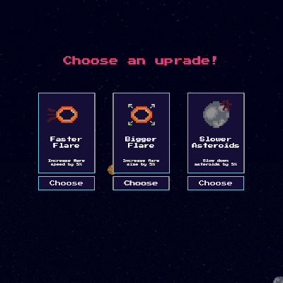 Try to survive as the sun! Defend your planets by shooting down the incoming asteroids with your solar flares. Gain upgrades and planets.